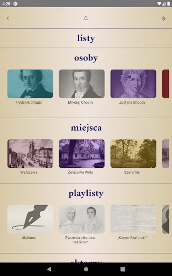 In the application, you can listen to letters chronologically, but also arrange the order yourself, use the prepared playlists, but also create your own. Concise and accessible descriptions of all the "actors" of the correspondence and the places where they have been, make it possible to get acquainted with the historical and geographical context.