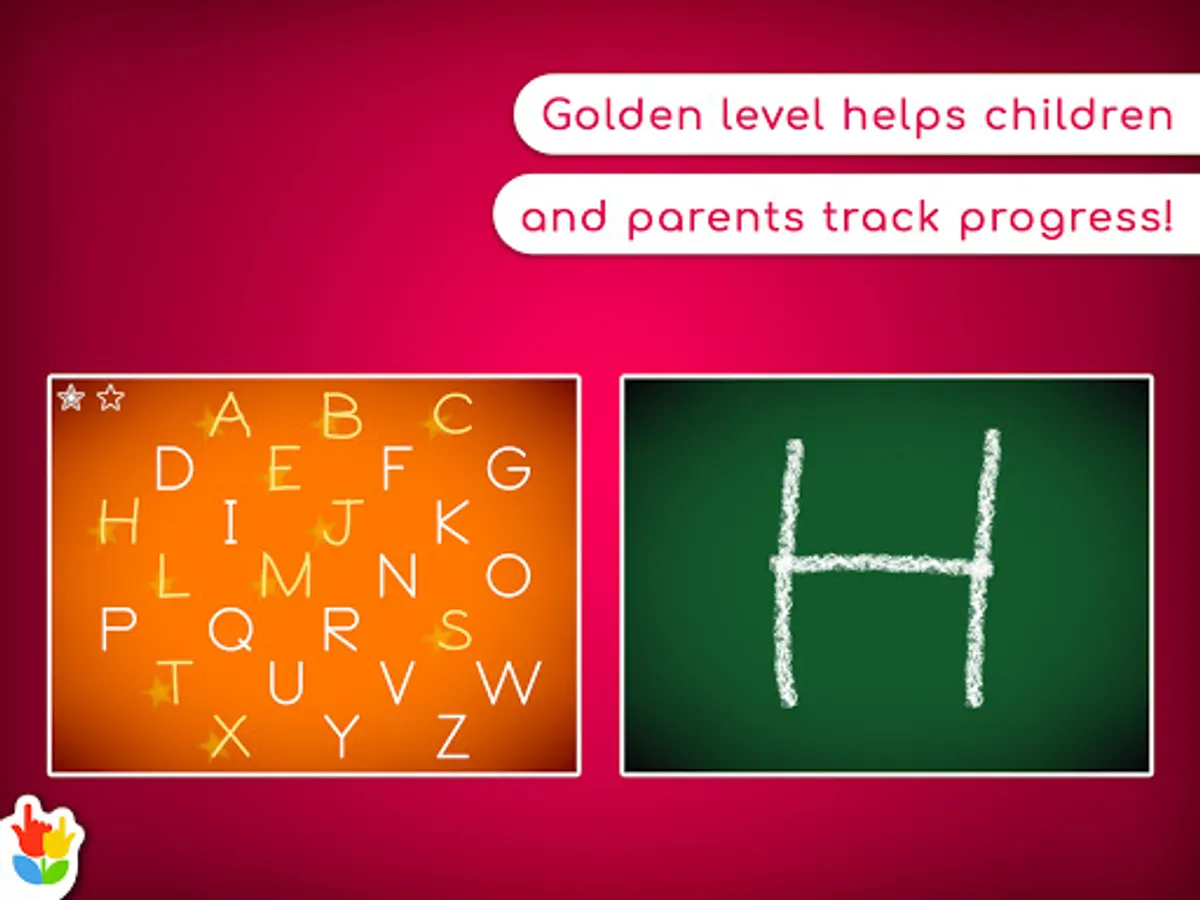 - Two levels, where Golden Level allows tracking kids’ progress by displaying their exact letter writing.