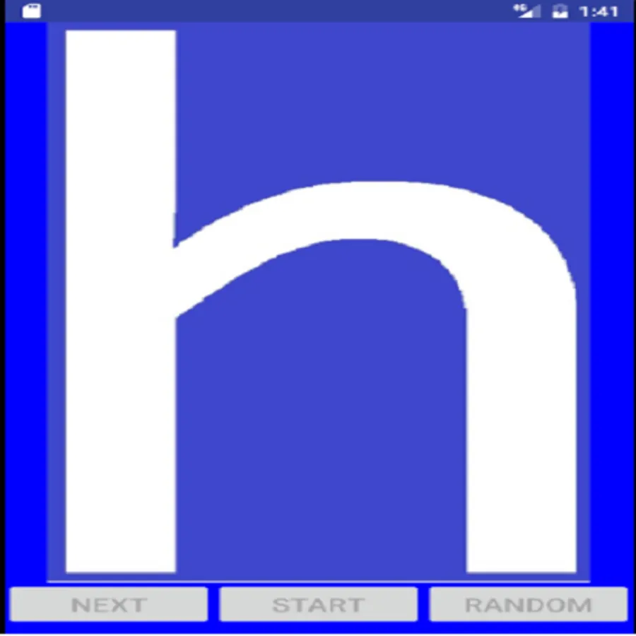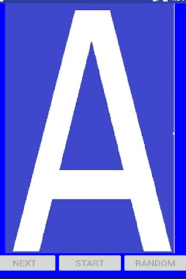 Capital letters's or Small Letters's activity has three buttons (Next, Start and Random) and ImageView.
