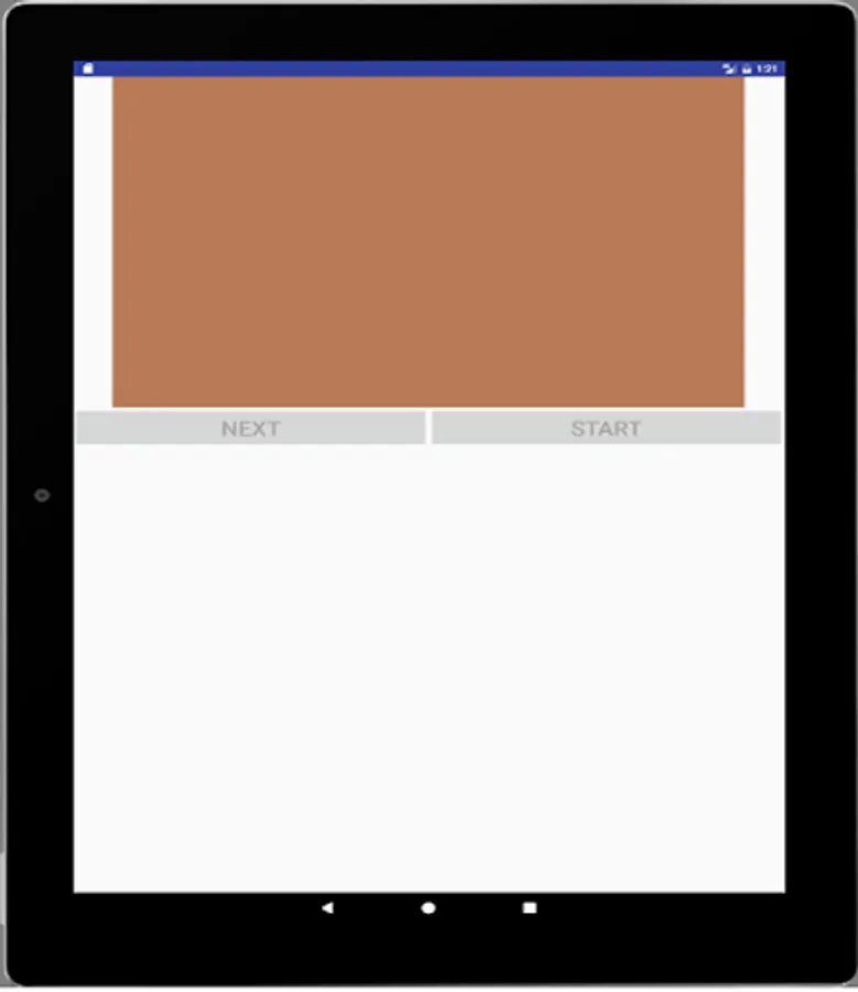 Colors's activity has two buttons (Next and Start) and ImageView.