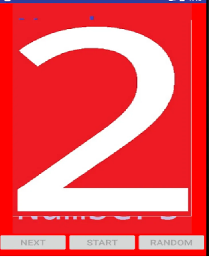 Numbers's activity has three buttons (Next, Start and Random) and ImageView.