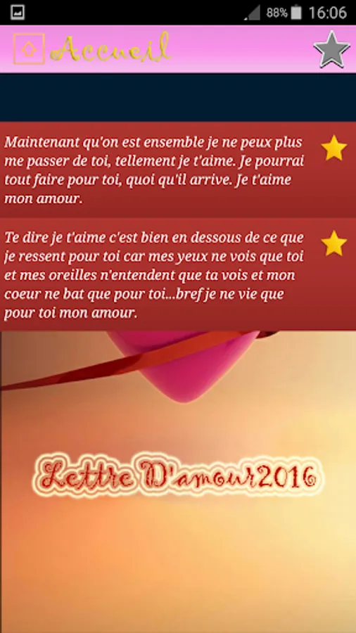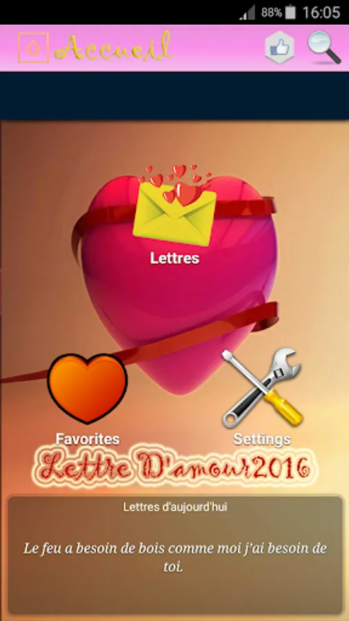 π Love Letter π is an application that allows you to express your feelings by sms of love.