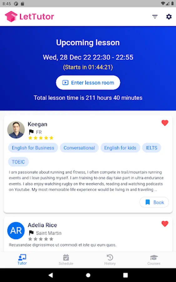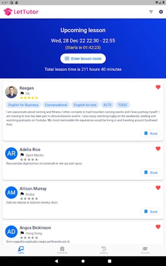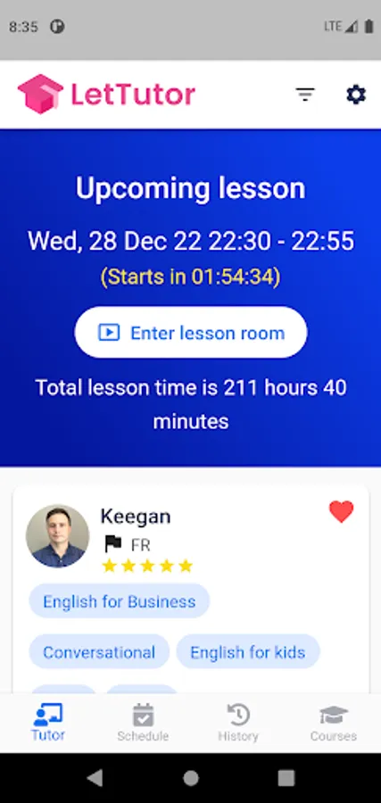● LetTutor's exclusive online English learning platform with features integrated directly into the website is extremely convenient, along with a mobile application to learn anywhere on mobile, iPad.