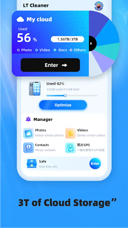 LT Cleaner excels not only at deleting and organizing but also at creating a safe space in which to keep private information. Store your photos and videos with a password set in the Safe. Reset only with your email, your privacy is reliably protected with yourself and LT Cleaner.