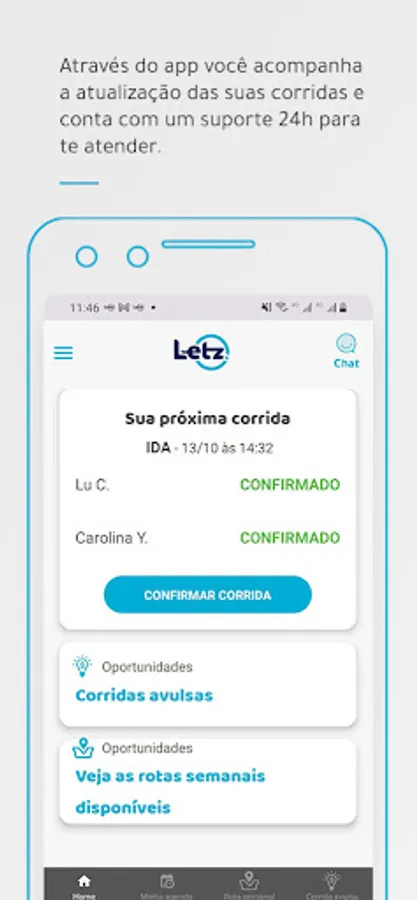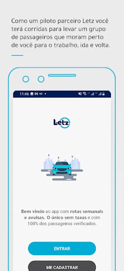 Meet Letz, the app without fees and with 100% verified corporate passengers, more security for you! Secure the first run of the day close to your home and go to shopping centers, without hitting the can.