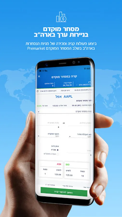גם מסביב לעולם: מסחר במניות ארה"ב קרנות סל ETF לרבות הוראות מותנות, מסחר של קניה ומכירה באופציות ארה"ב בזמן אמת, מסחר במניות באירופה.