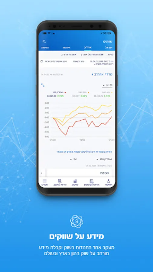 בנוסף, ניתן לצפות בכלי השוואה מתקדמים ומידע מפורט על הניירות הנסחרים בכל שוק, ולקבל מידע בזמן אמת על האחזקות בתיק, כולל אחוז שינוי יומי.