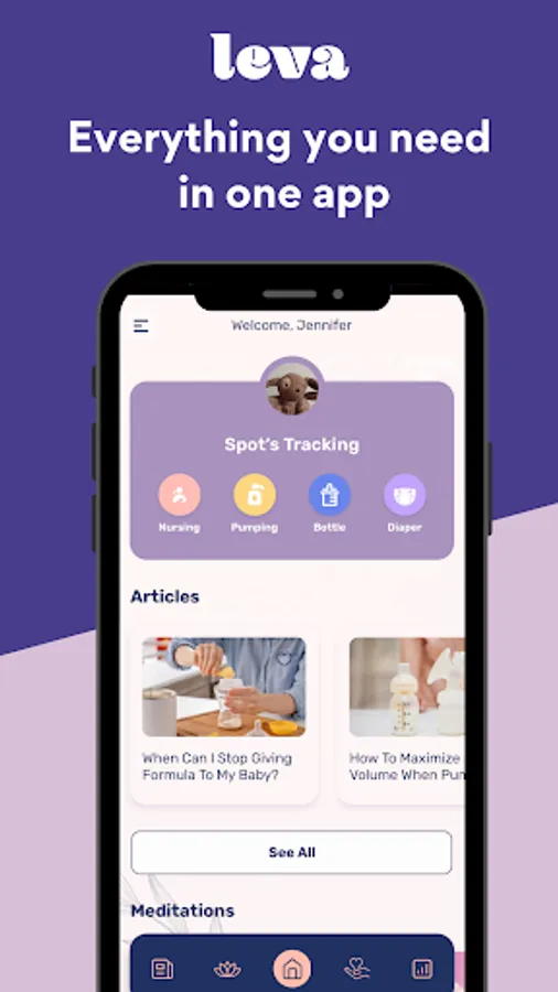 Whether you have questions during a 2AM feeding or want to see if your baby is on track or listen to a Meditation made for new moms, Leva app and team are here for you.