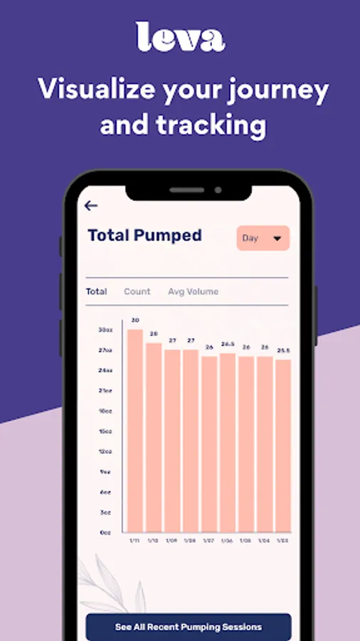 Pumping tracking - Track the quantity of breastmilk you pump per session by left or right breast and keep track of your output versus demand to help optimize your milk production.