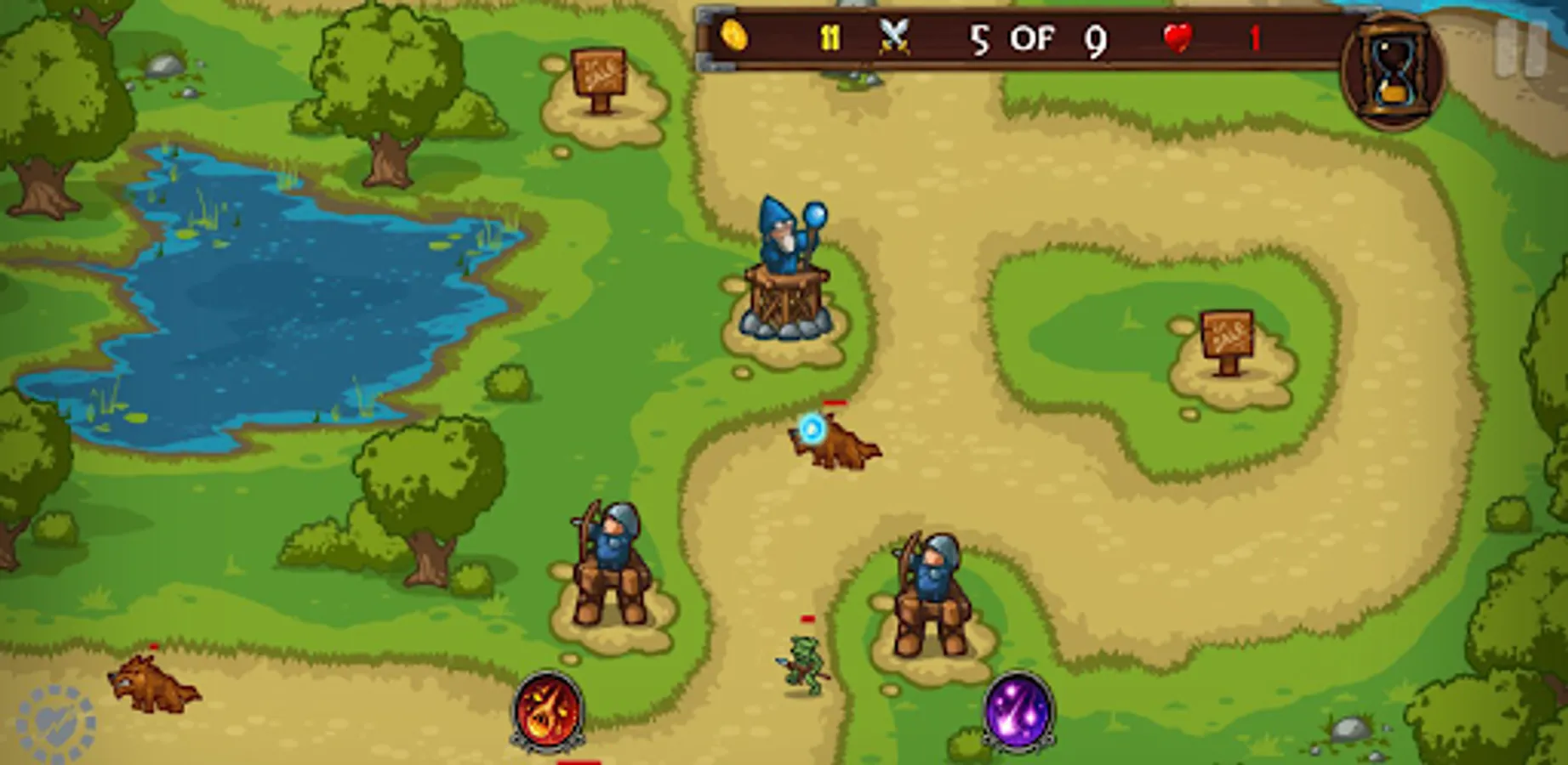 Подбор вида башен и их расположение — неотъемлемая стратегия игры. Обычно «ползучие твари» пробегают через подобие лабиринта, что даёт игроку возможность стратегического размещения башен, но также существуют известные версии игры, названные линейными TD, где вместо лабиринтов используются прямые пути . В некоторых версиях игрок может сам выстраивать лабиринт из башен и блоков.