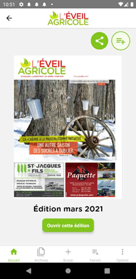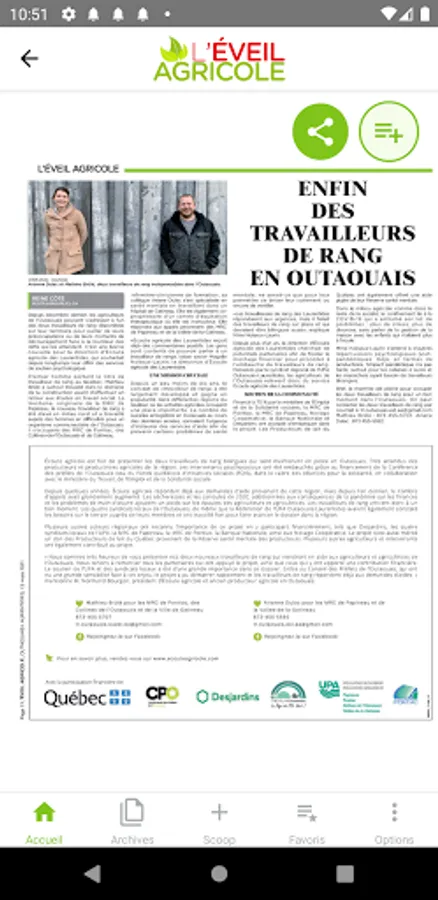 The free application L'Éveil agricole informs you on topics of interest in the agricultural world of the Laurentians and the Outaouais. Consult the new publications or the archives.
