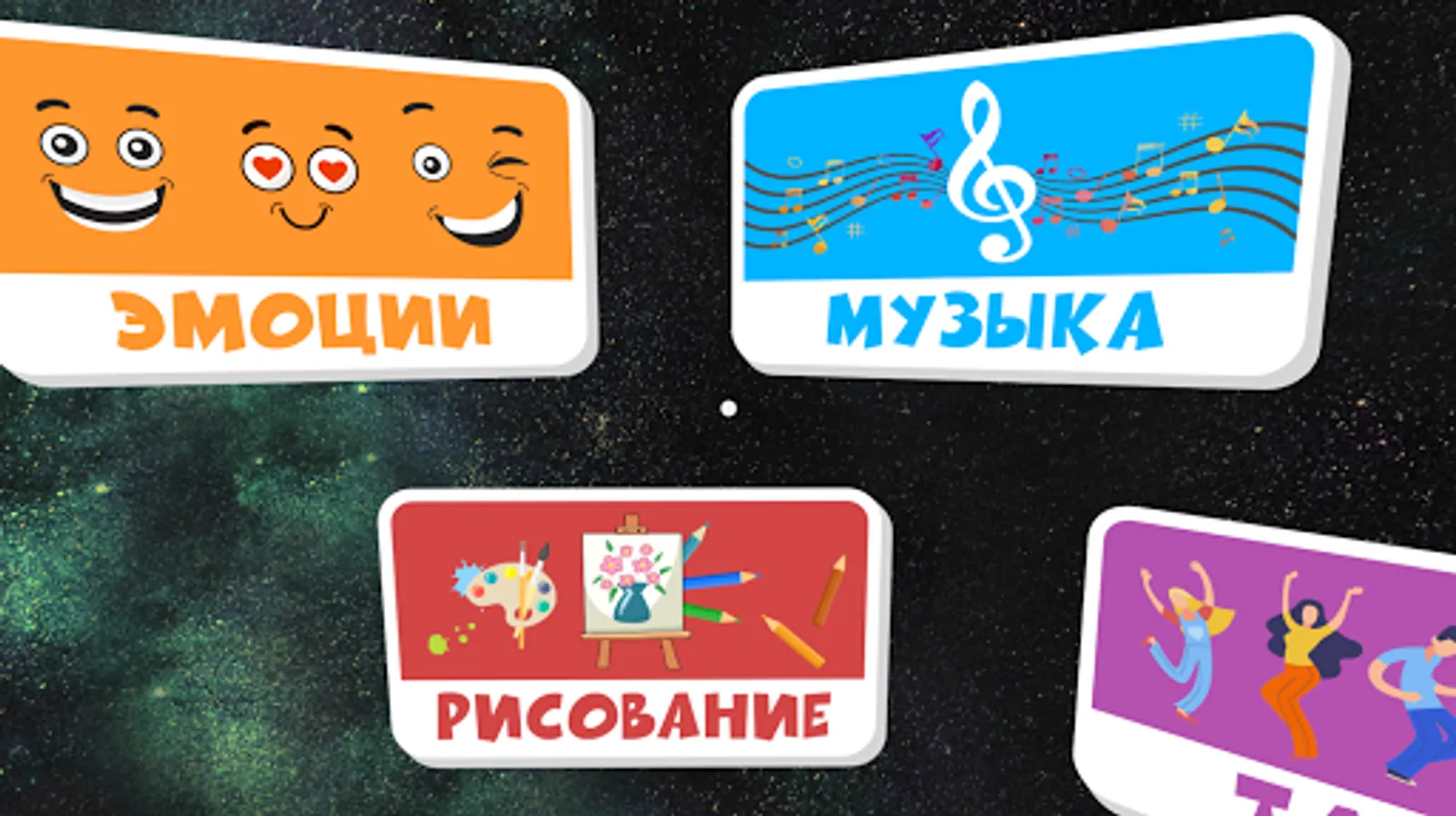 The application is a collection of video lessons in VR360 format for children in 5 directions: Emotions, Music, Dancing, Singing, Drawing. A VR headset is required to use the app.