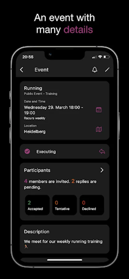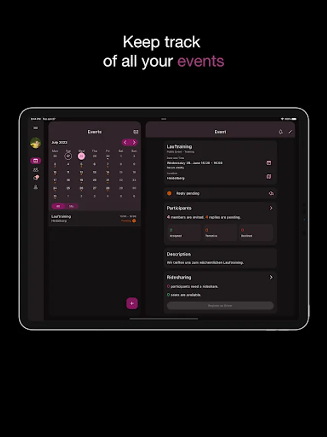 Stay up to date with updates on events and members with Unypan. You'll always be informed when events change or members join or leave. Group leaders can invite members directly to events and participate in events as leader.