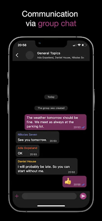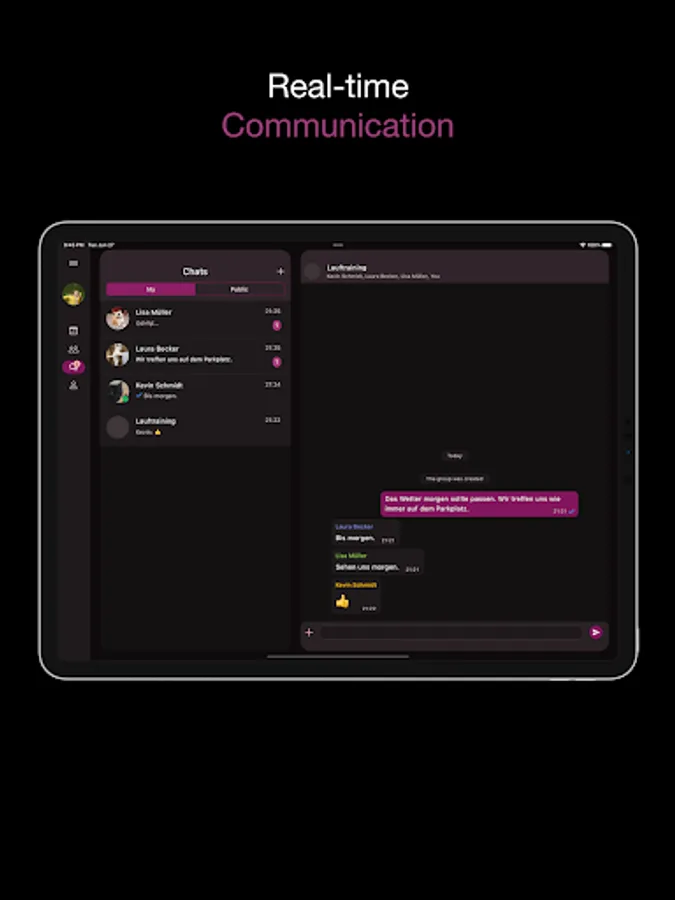 Unypan's chat feature is simple and fast. You can chat directly with other members or communicate in group chats. The chat is intuitive and allows you to exchange all important information quickly and easily.