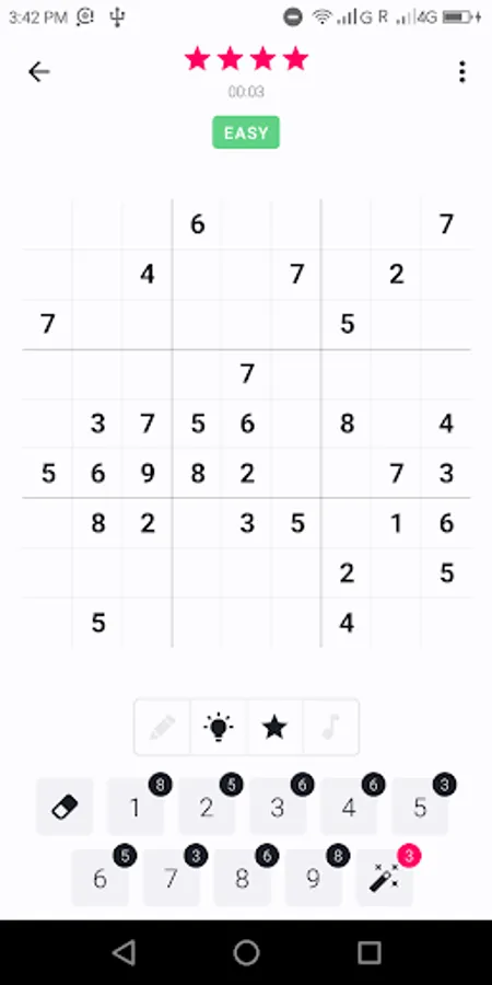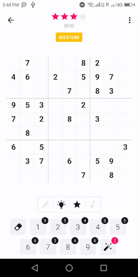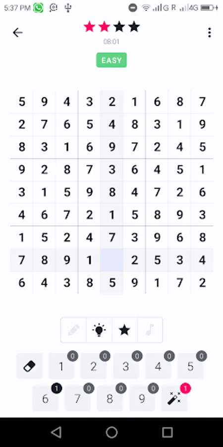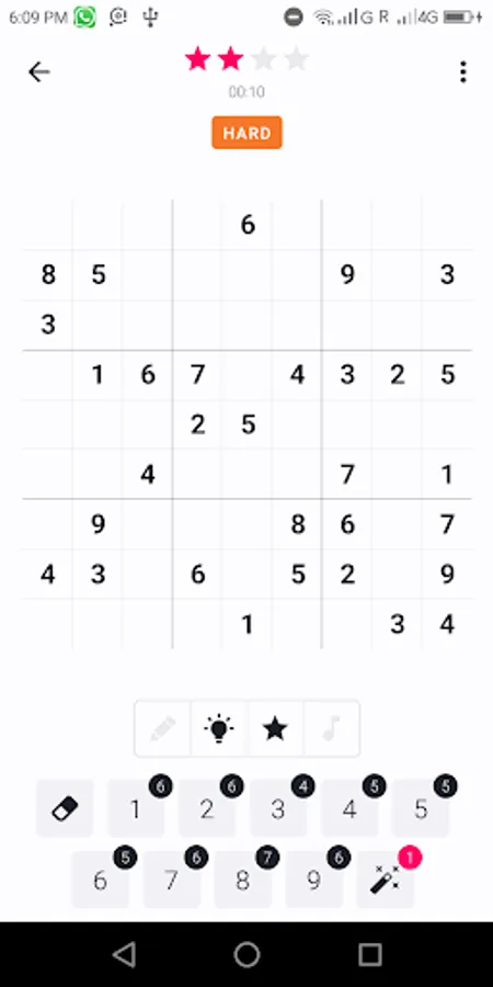 It is very simple and interesting to play in Sudoku. There is a big 9x9 square in the center of the screen and a keypad with numbers from the range of 1 to 9 under it. Above the keyboard there are few buttons that will help you customize the puzzle. With these tools you can turn draft mode on and off, show or hide some tips, enable or disable sound, and switch between other game modes.