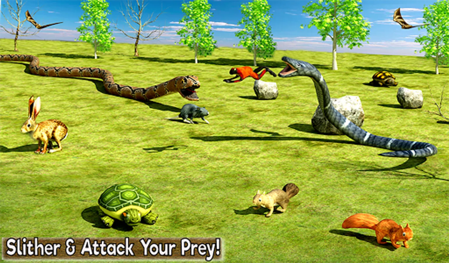 Devour your prey before the time runs out. The Survival snake was only running in forests and jungles for years, but now it is ready to run on your smartphone! Utilize your stealth and cleverness to carefully calculate the right time to Hunt.From the jungles of the Aamazon comes one of the most feared animals on the planet - the Anaconda. This guy is looking for his next meal. But you can be sure, it wont be you. This game puts you in control of this deadly beast. Rise from the water and look for your next snack. This snake is ready to attack anything in his way. Rabbits, Rats, squirrels, Chickens, Frogs, Spiders, Bats, Turtles, African animals - cheetah, tiger and anything else he wants.