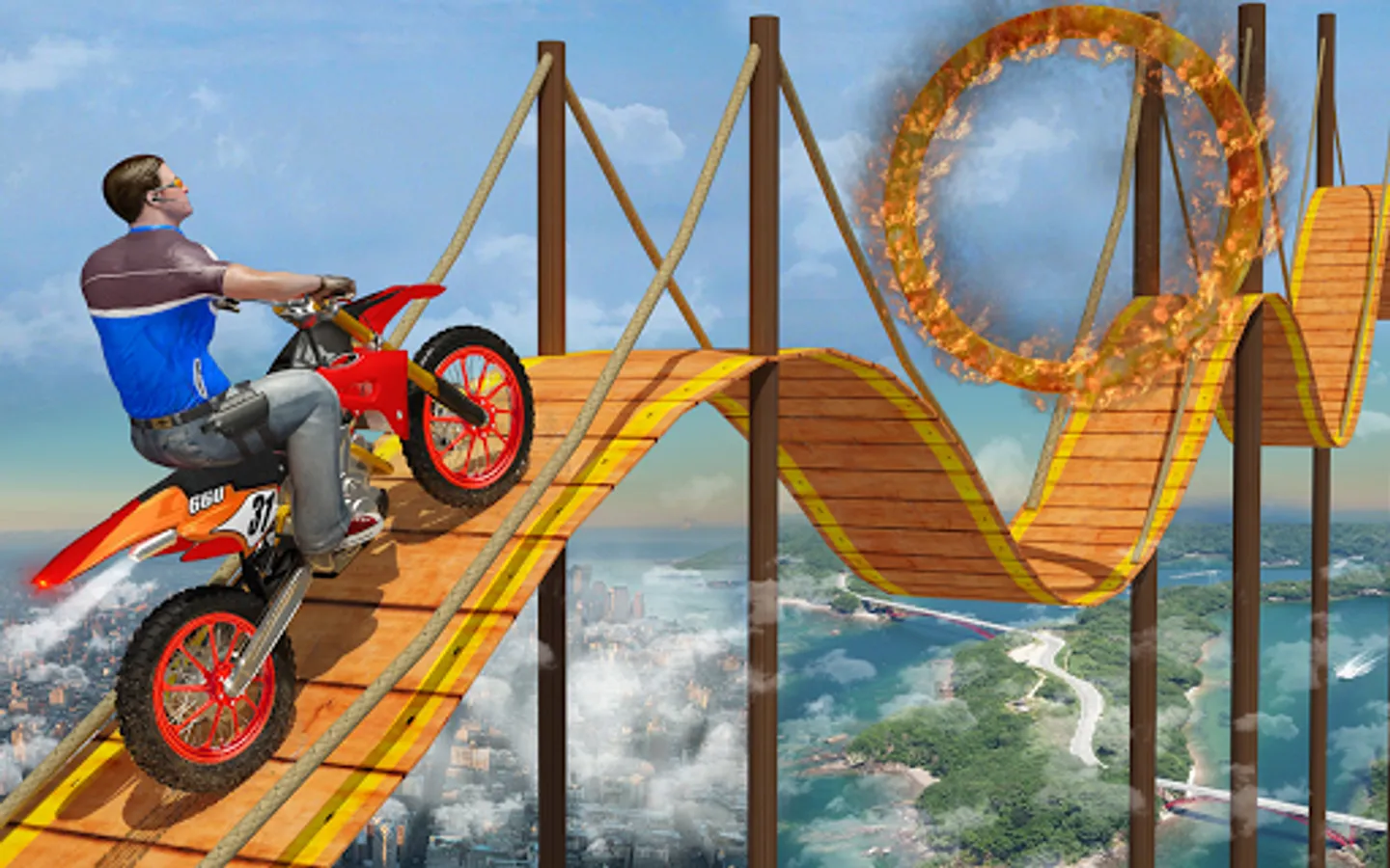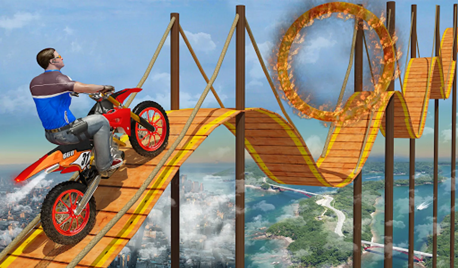 Welcome to bike tricks & stunt master racing game. One of the best tricky bike stunt racing game in difficult area without road rashs. Race your bike and make real stunts on impossible tracks in the air like crazy riders. Xtreme and trail is a new era in motorbike stunt racing games adventure. Have you ever dreamed of performing motor bike master in bike death of racing games designed for daring highway riders on bizarre offroad? Hurl yourself into the world of dirt biking adventure! This freestyle bikes jumping stunts and addictive game.