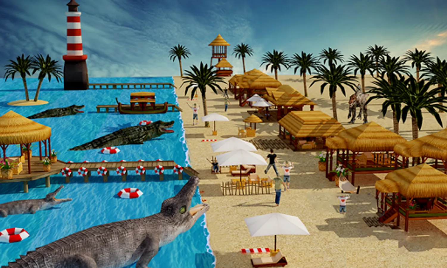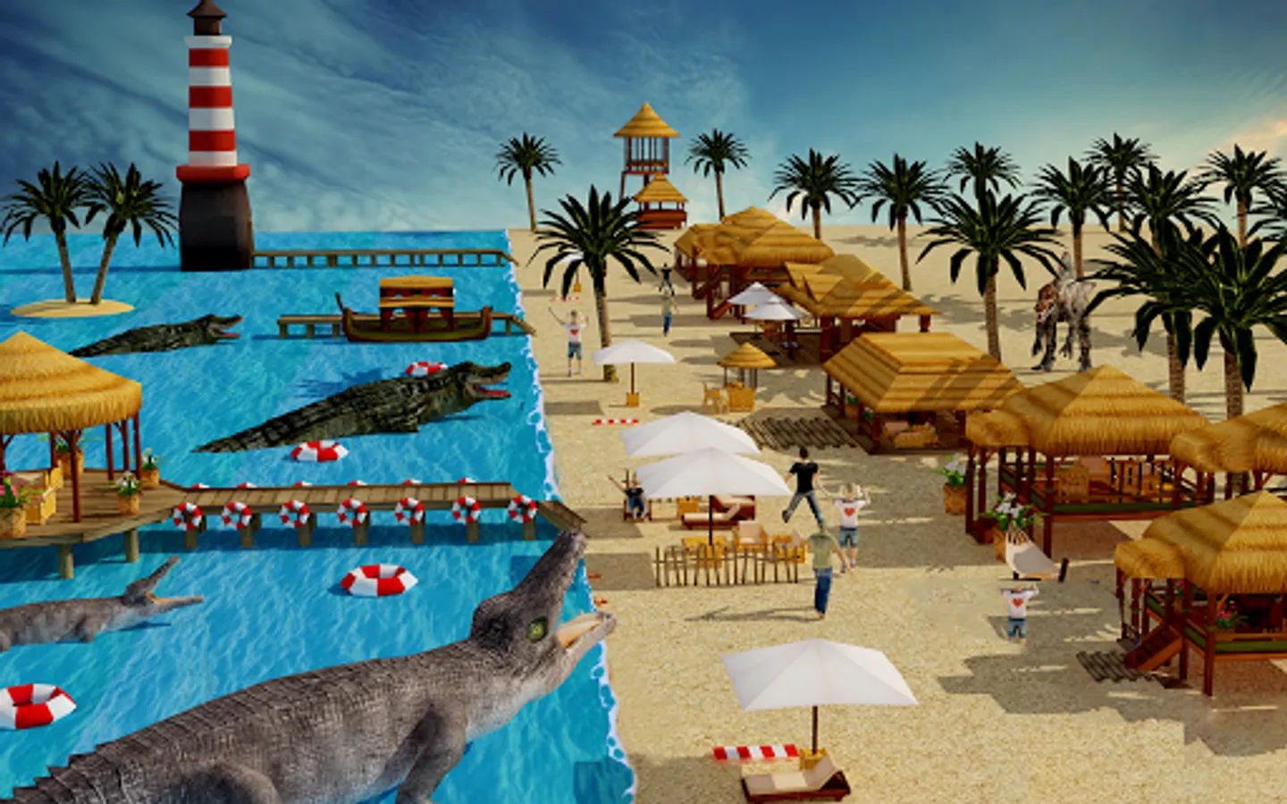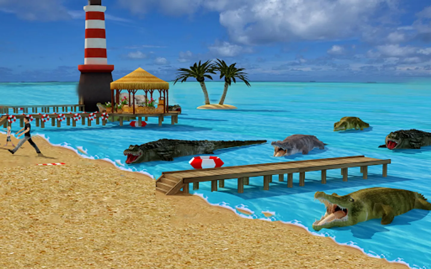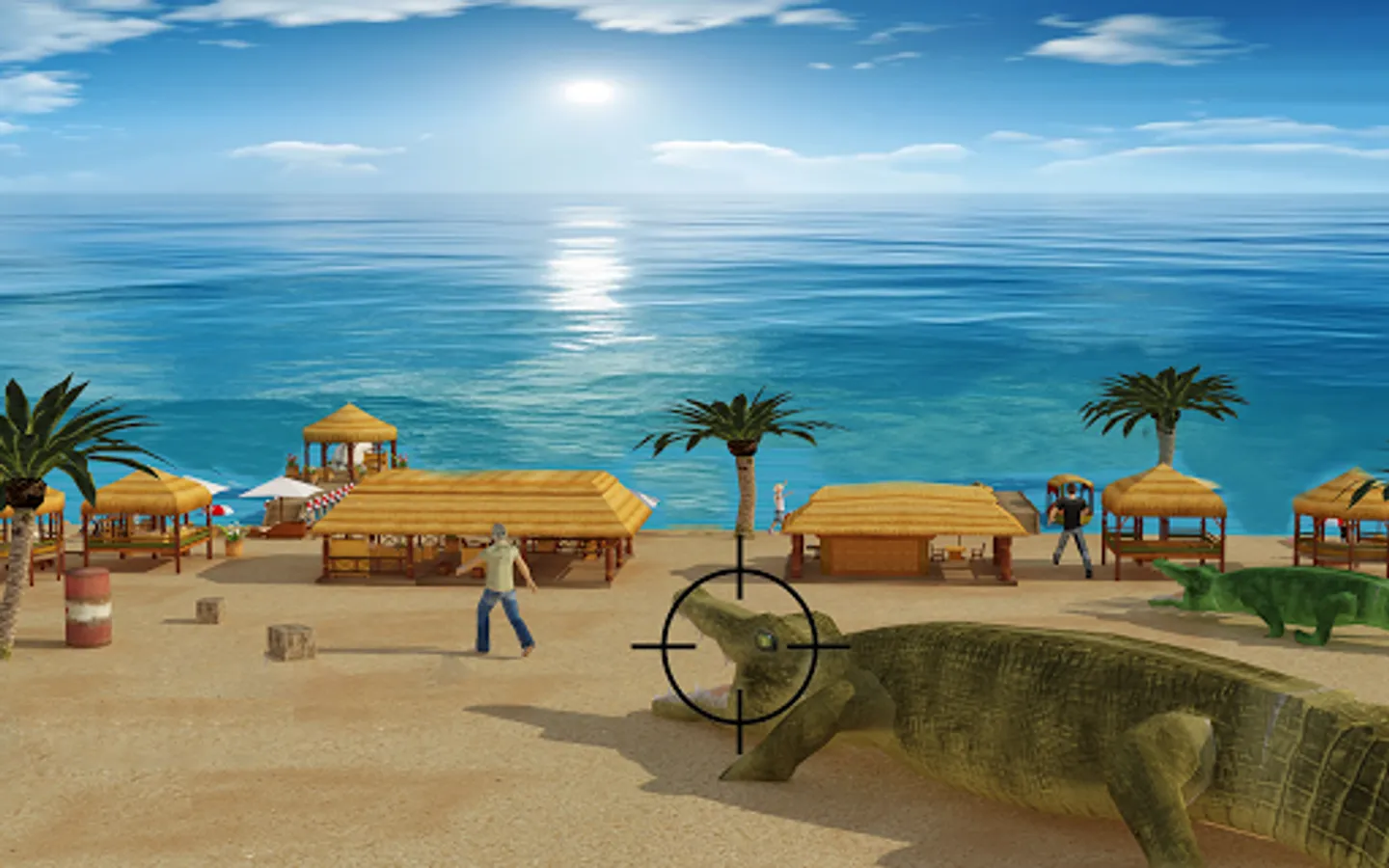 As a skilled sniper, having served military, you take out your weapon to save civilians playing at beach. Show your brutal attacking skills to hunt down beast at sea and save yourself from their counter attacks in this survival island. Rival business tycoon conspired to keep you locked up, now it's time to take your respect back. Shoot spotlight, pick lock and move from shadow near beach to strike with deadly crocos. Kill all deadly gators and save previous human lives! It’s time to demonstrate your superior skills and kill maniac alligators. Use weapons like the ShotGun, and the M19. Kill or be killed, be a part of ultimate battle between you and willd angry crocos.