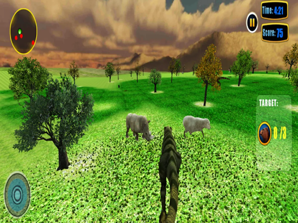 Take control of this huge dinosaurs as he hunts down his enemies. It is one of the most feared giants. He's back and now in this high action game for your mobile device. Battle against stags, Fox, Bear, Zebra, Sheep, Cow, and Rhinoceros.