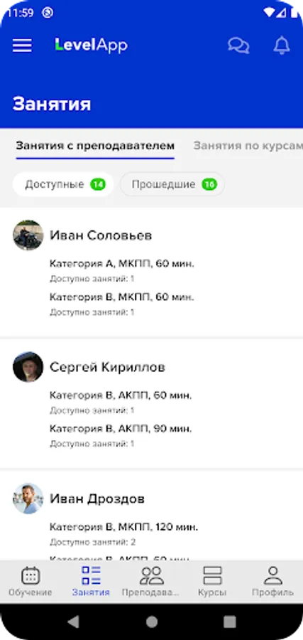 LevelApp mobile app. If you are an instructor, find new clients, create a class schedule, conduct classes and receive payments. If you are a client - choose an instructor, communicate, pay for classes on a safe transaction, use the class schedule and class reminders.