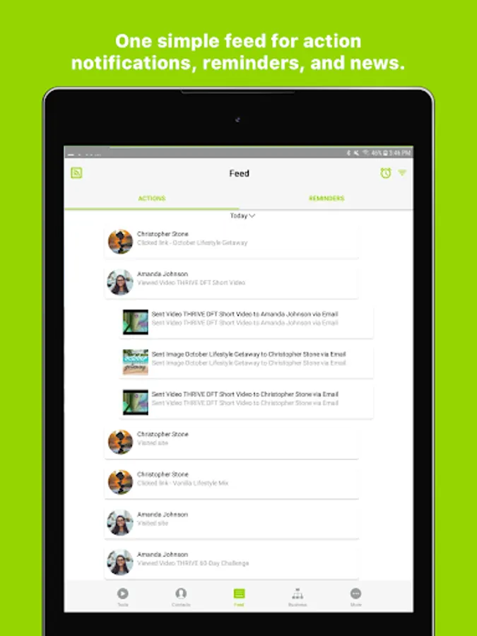 Tools: It has never been easier to share information about your products and opportunity via SMS text, email, or social media. Simply choose tools specifically designed to promote your business and share them with a contact. You’ll receive a notification when contacts view a tool so you know exactly when to follow up! You can even add your own tools. Record or upload short videos to share with prospects. You can even add actions to your videos so prospects can interact directly in the video. These smarter interactive tools are called a Brightool and they provide more data for follow up with ActionAlert notifications in the Feed. No data connection? No problem! Simply download tools such as videos in the app beforehand for offline playback.