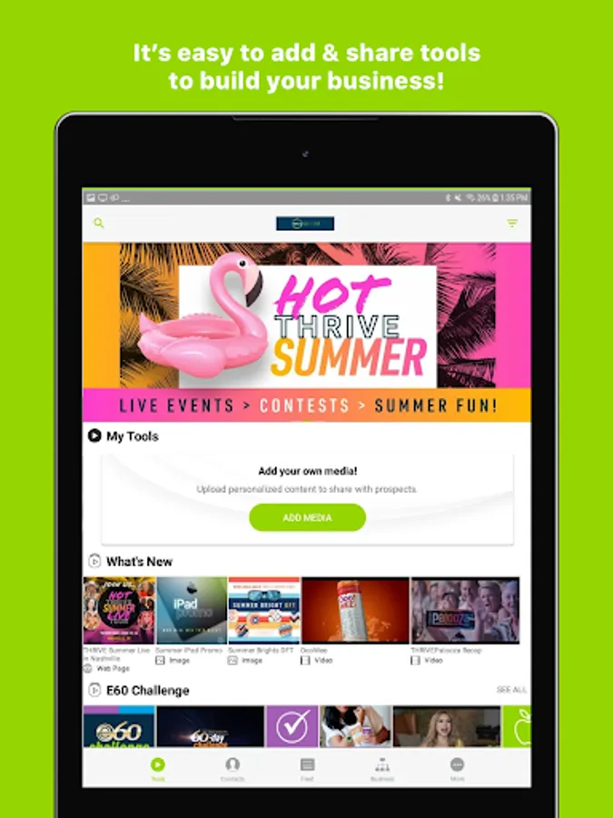 With the Thrive Connect app, you can easily share your way to success with tools that create word-of-mouth buzz and complement belly-to-belly efforts! Connect with new contacts and interact with your team by sharing exclusive, corporate-approved tools. You’ll have a vast array of marketing materials like videos, images, and more—all right at your fingertips! The powerful, yet beautifully simple design, along with compelling tools, makes growing your business simpler than ever.