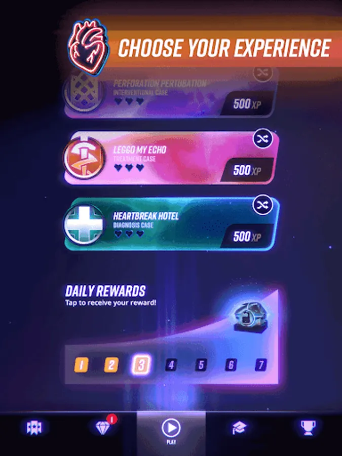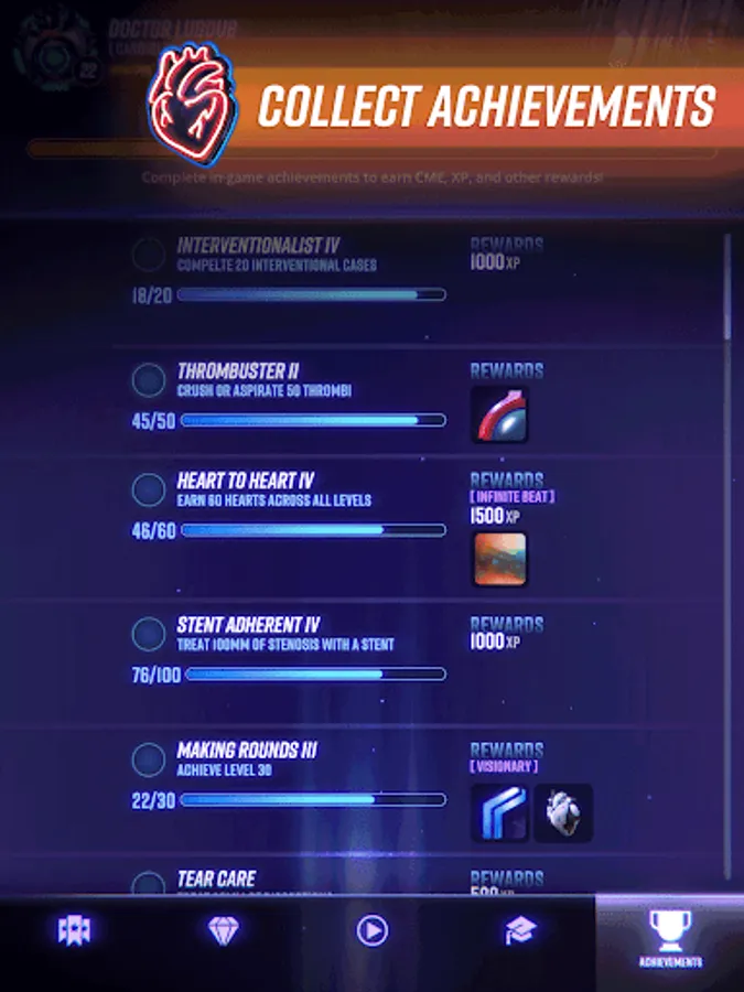 You work hard, now it’s time to play hard in the cardiology app that reimagines your specialty as a captivating video game. A winning combination of clinical and procedural gameplay brings you back to what you love about practicing medicine and delivers critical information that keeps you performing at the top of your game—all for FREE. Cases refresh daily: Diagnose and treat diseases from common to rare, and play even more heart-pumping PCI levels within Cardio Ex’s vivid vasculature. Rare medical scenarios and complications help you stay a beat ahead and prepare for your next real-life boss level.