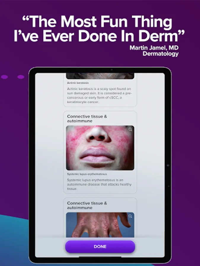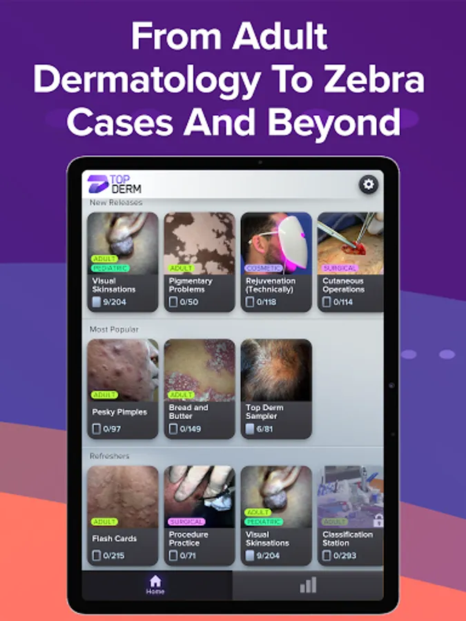 Top Derm is made by derms for derms. We worked with over 140 derm experts to create a medically accurate, fun, and challenging experience, unlike any other medical resource you’ve ever seen.