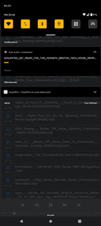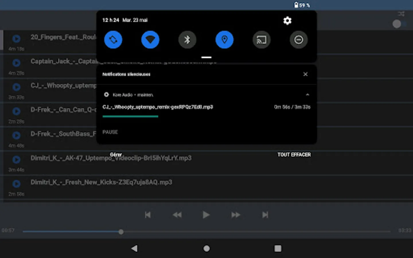 One-to-one or random playback, automatic pause during a call and control via Bluetooth (media key) and notifications. No hassle, no advertising.