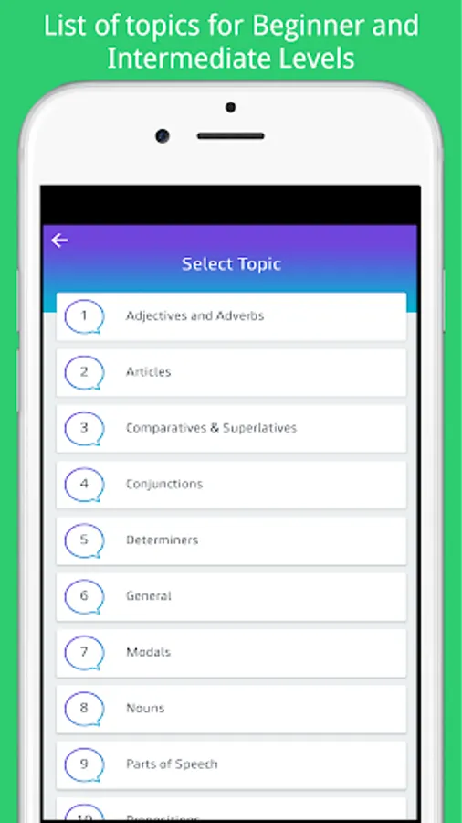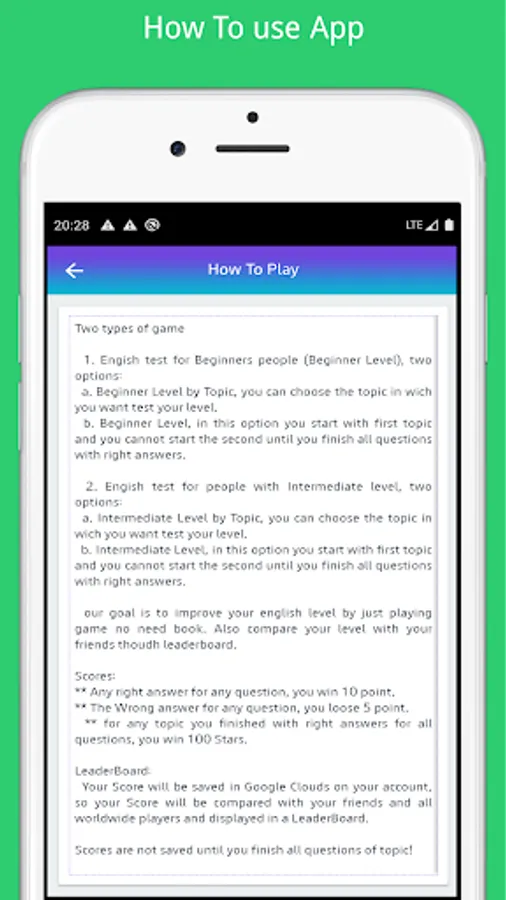 ENGLINEST is a free app to test english level and helps you to improve your english grammar & skills. it contains more than 1000 multiple choice questions for beginner and intermediate levels.