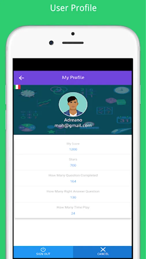 **In your Profile, see your Score, how Many Question Completed, how Many Right Answer Question and How Many Time you Play.