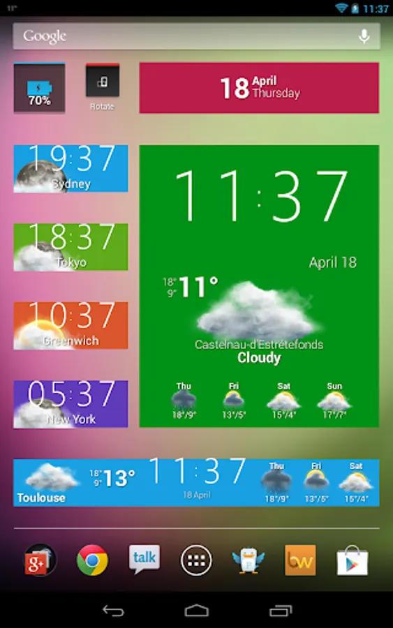 Thanks to its multiple customizable widgets and themes in the Play Store, you can customize your home screen according to your moods and desires with clocks, widgets and weather. You can also view the current weather and the forecasted weather with beautiful animations.