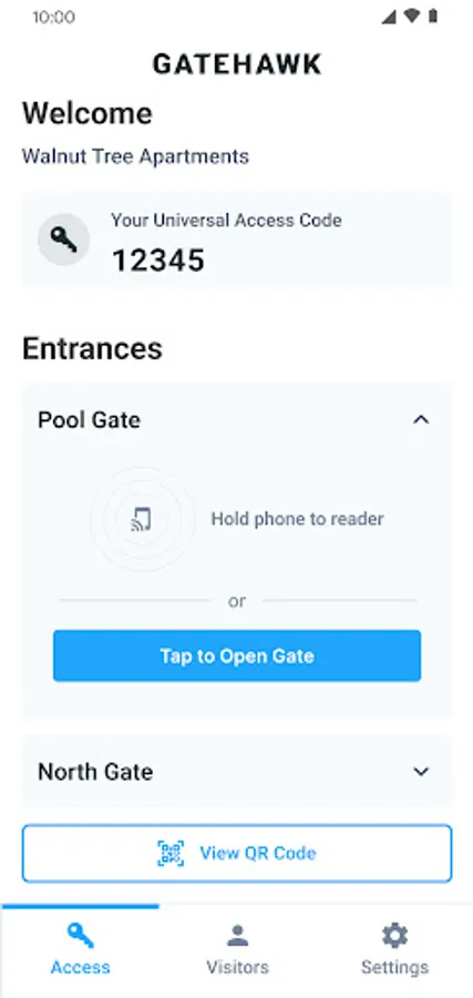 - Unlock the property gate with your phone, a numeric code, or a QR code