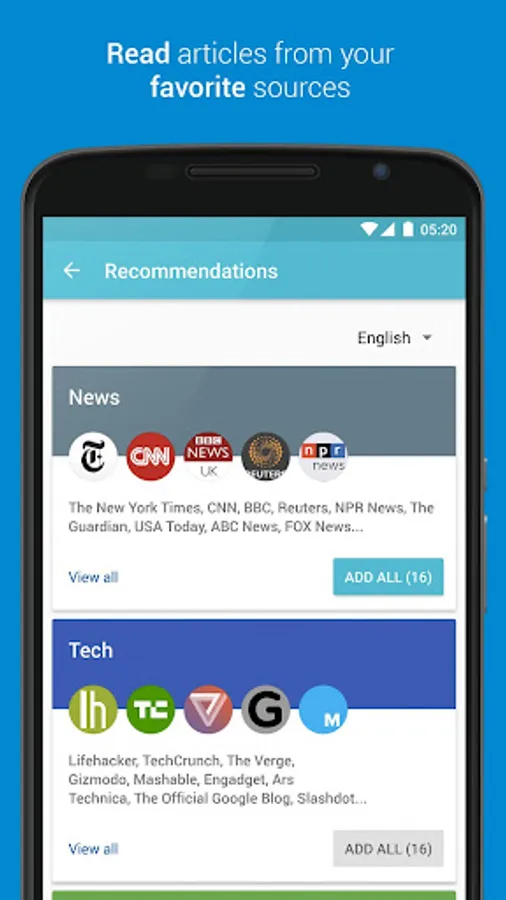 Follow our recommendations or search for your favorite site or blog to add new content.