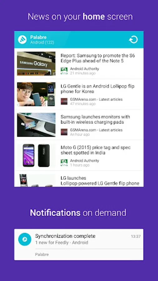 Palabre is RSS Reader that features offline reading, extract full articles (readability like) from RSS feeds, a dark theme, synchronize reads/unreads Feedly Reader, import RSS feeds from OPML, magazine layout, scrollable news widget