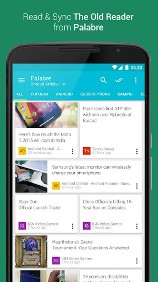 Palabre is your unique source for daily/hourly news from RSS feeds and Feedly. By the author of Plume (Twitter client), Beautiful Widgets and Bright Weather!