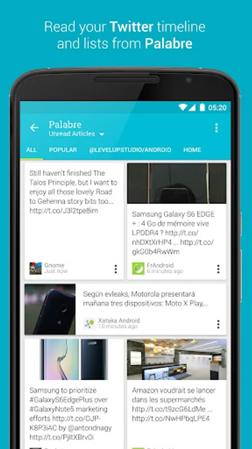 Palabre is your unique source for daily/hourly news from RSS feeds and Feedly. By the author of Plume (Twitter client), Beautiful Widgets and Bright Weather!