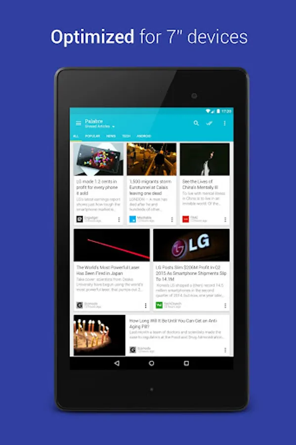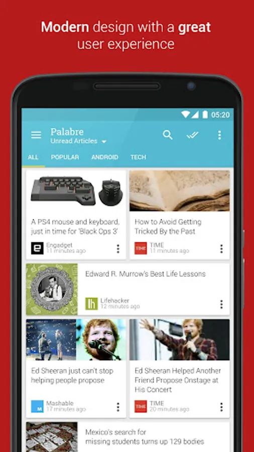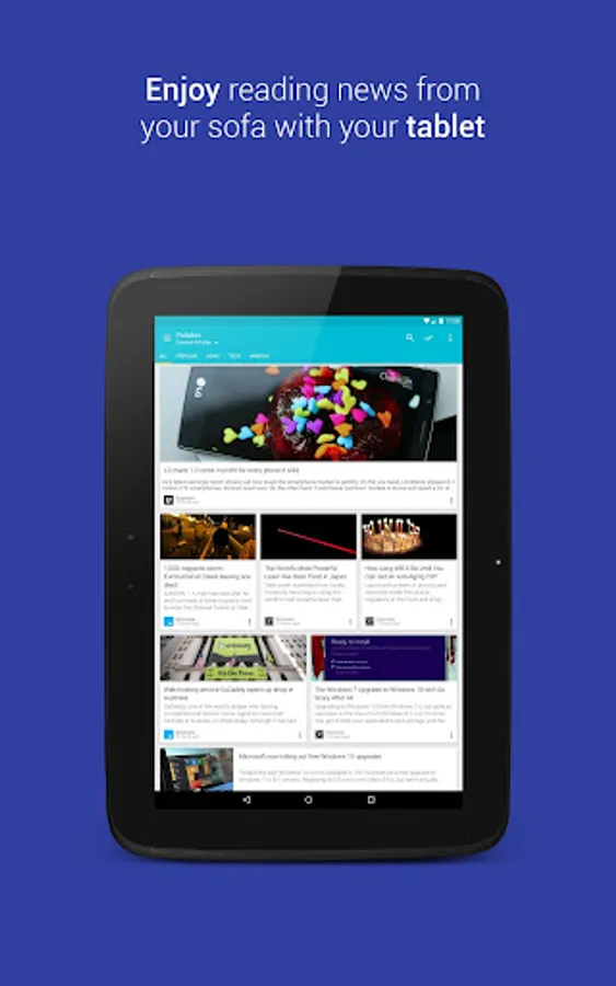Featuring a modern material design, this news reader application will help you reading news and articles from your favorite topics with like a news magazine.