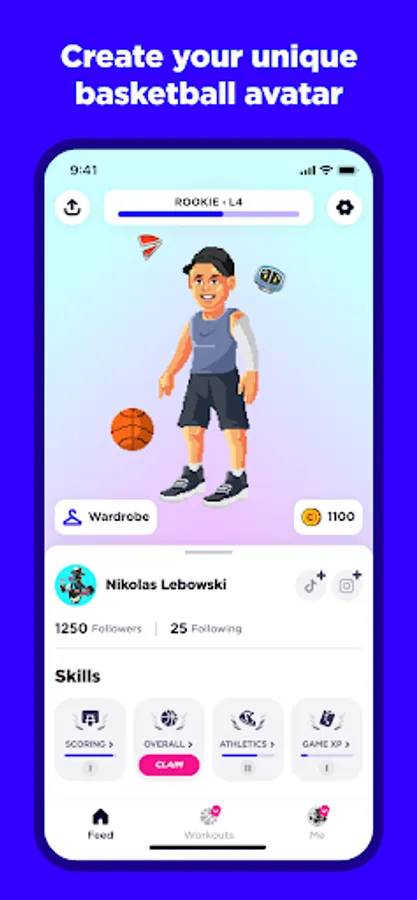 - gamification, engaging players in the basketball training process (earn coins, unlock achievements trophies, customize your virtual character)