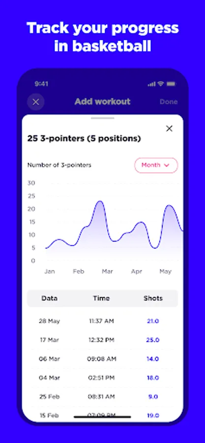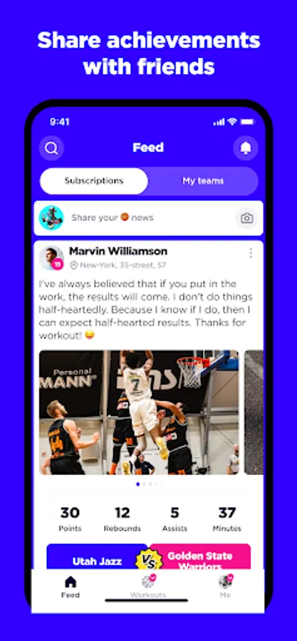 Get access to a community where you can share results with your teammates, develop skills, find a basketball coach to start or continue professional education, access training plans created by professional coaches, track progress, and support others.