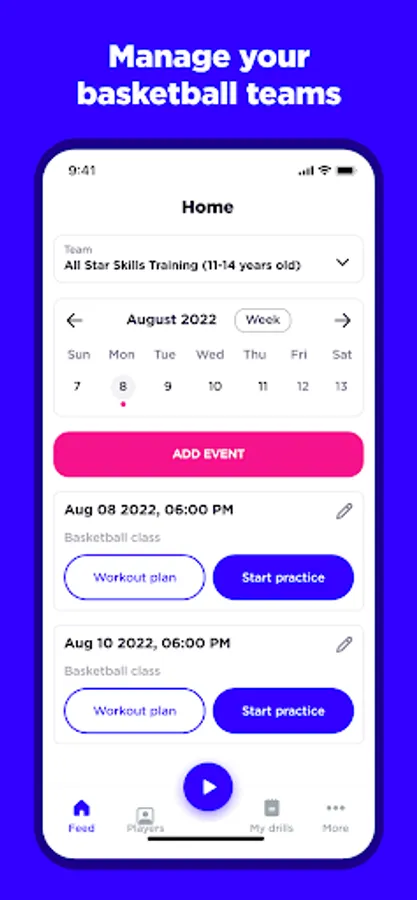 With our basketball app, players get personalized basketball drills and training sessions, improve basketball game skills, and train with their basketball coach personally or in a group, remotely, or in person.