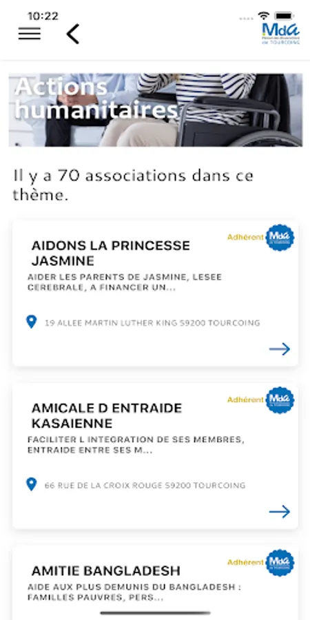 The MDA application is the home directory for associations in the city of Tourcoing.