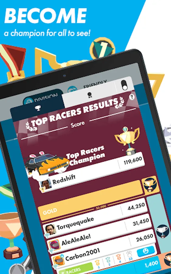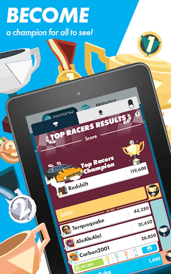 Add spoilers, new wheels, paint jobs and much more and show off your personality. Race your friends in style!