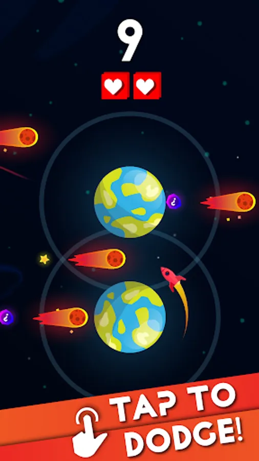 The game controls are very simple: tap the screen to control the rocket for as long as possible, dodge rockets and meteorites, and explore amazing space worlds and planets.