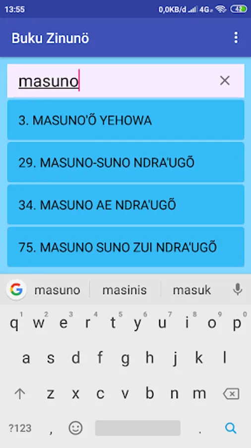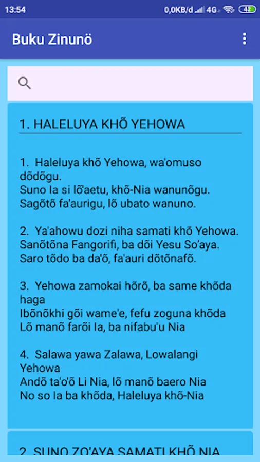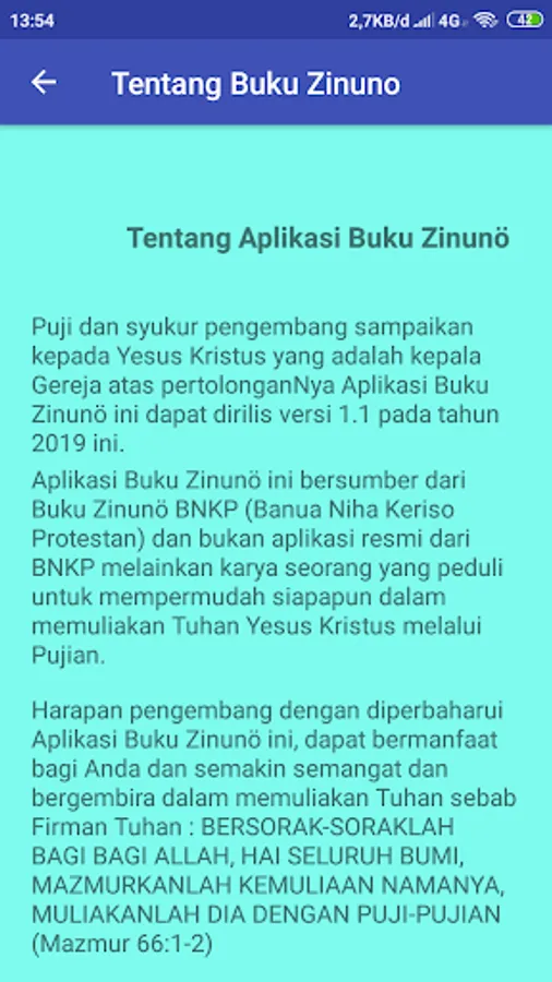 The Zinuno Book is a Protestant Christian Hymn of Nias language sourced from the Zinuno Banua Niha Keriso Protestan Book (BNKP). Zinuno Book Developers only intends to facilitate the use of glorifying God with Praise