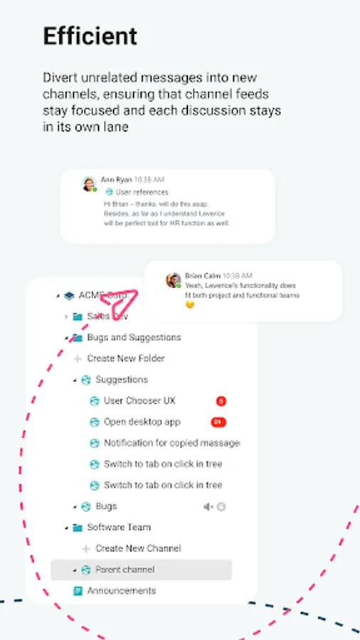 Enjoy unique threading structure and features to manage the flow of discussion so conversations stick to channels and subchannels where they belong.