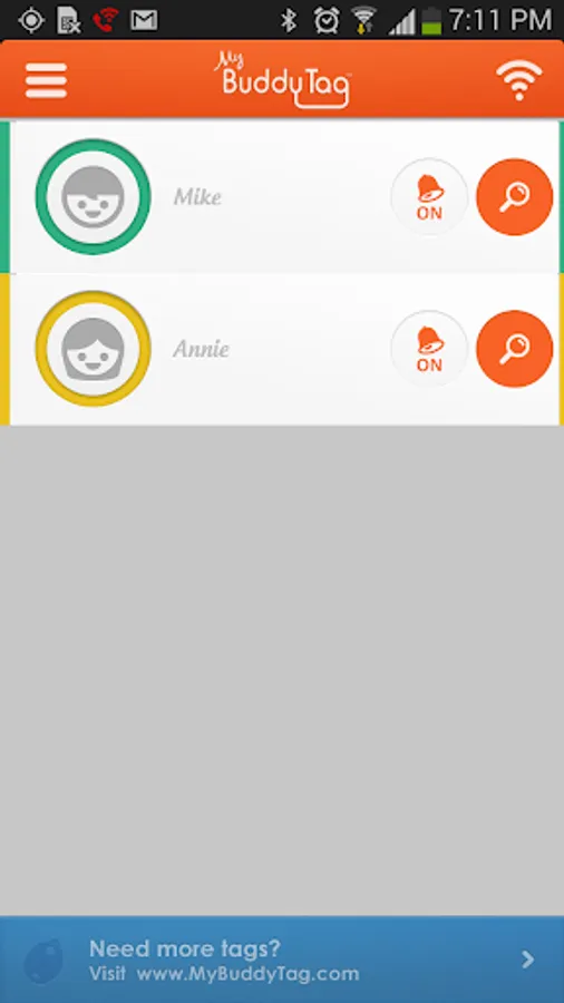 Lost child is a parent's worst nightmare! BuddyTag App, together with its bluetooth tag and wristband with personal ID, helps parents track their kids when out and about. BuddyTag App will sound an alarm on Android devices if the child with BuddyTag is out of the App's proximity. If the child did get lost, the personal ID information on the wristband will help get the child reunited with the parents. In addition, there is a Panic Alarm on the wristband with the bluetooth tag, and the child can press Panic Alarm to notify the parent that he/she needs help.