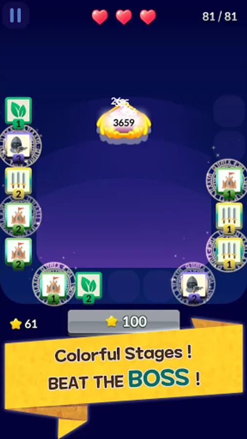 Go through the stage and grow your towers, defeat more powerful enemies and move forward.