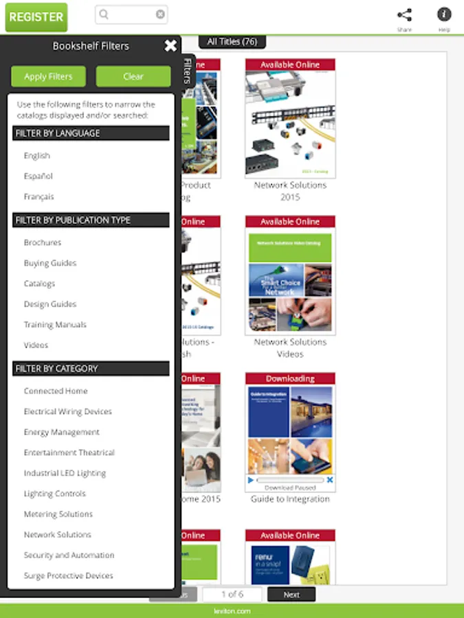 The Leviton Library app is the smart choice for accessing the digital versions of all of Leviton’s catalogs and brochures, right from your tablet and smartphone. Electricians, contractors and homeowners can access all of Leviton’s 25,000+ products – including switches, dimmers GFCI’s, occupancy sensors, network and data center connectivity solutions, electric vehicle chargers, energy management systems, and security and automation applications – with a simple swipe! Perfect for all users of Leviton products making decisions at residential, commercial or industrial locations. The Leviton Library app provides you with seamless navigation through all of Leviton’s catalogs and brochures – easily grouped by product families or by application.