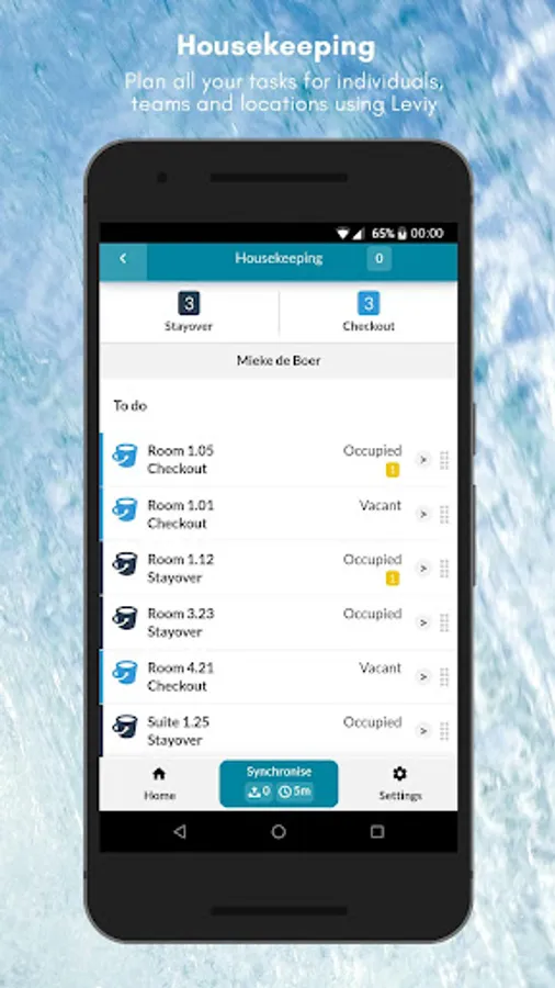 Cost savings, trust and transparency are created in the app by enabling realtime communication, planning, analytics and reporting about room status, work schedules and communication. Leviy helps clients to get ahead of the trends and to recognise significant efficiencies and cost savings.
